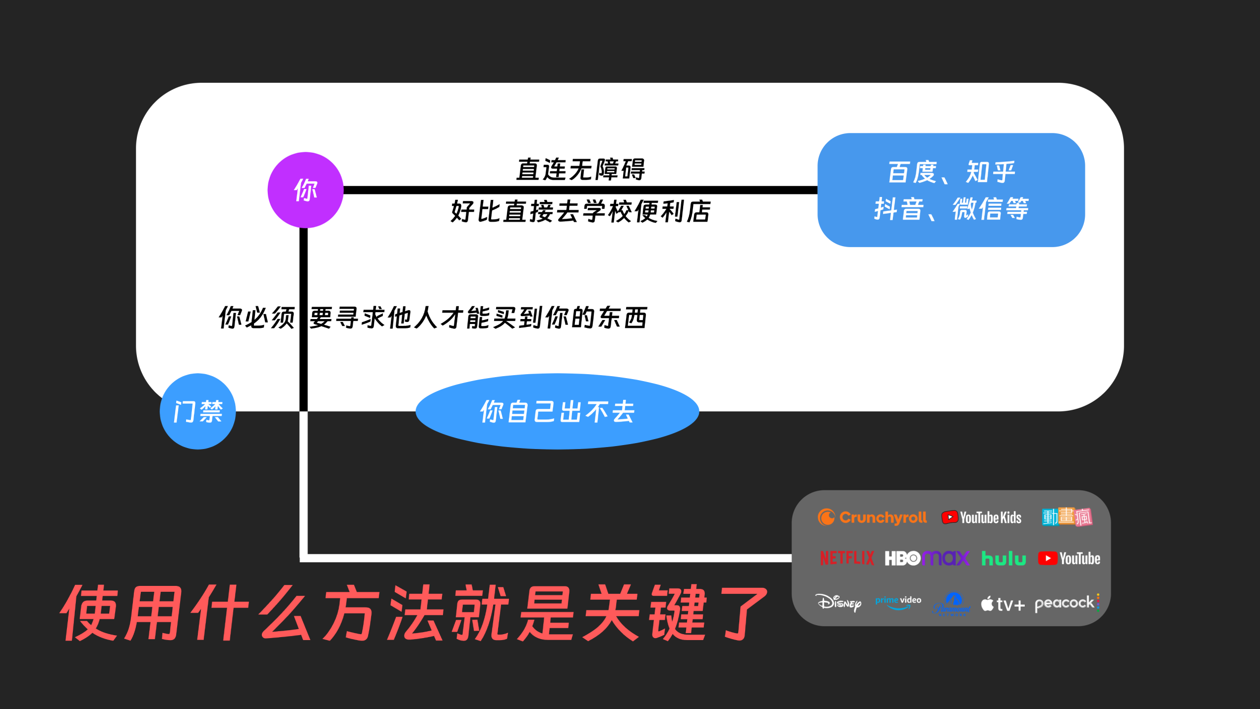 我们日常上网譬如说去搜一份资料,国内的百度、搜狗、等等平台马上就能给你反馈,但它给你的只能是它系统中有的,就好比你去学校内部的小卖部买东西,都是经过审查的日常运营也是受监管,目的是保证安全,但代价就是选择少,体验差,并不能满足你的需求